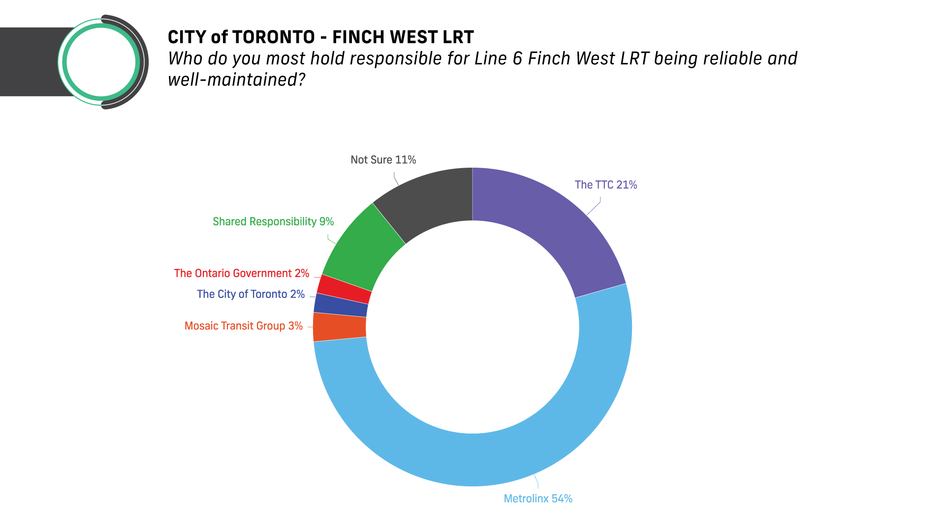 That said, most Torontonians place the blame on Metrolinx: 54% say it is most responsible for the Finch West LRT’s problems, compared with just 21% who point to the TTC.