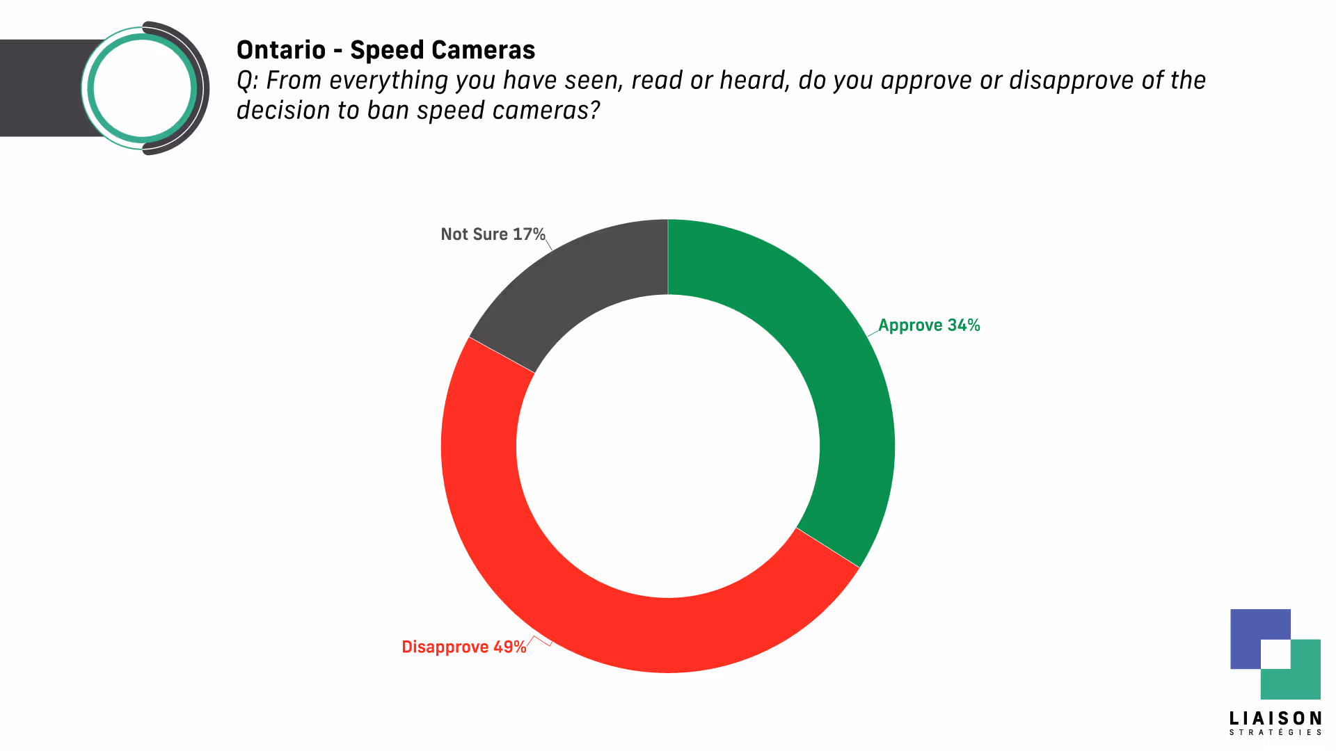Meanwhile most Ontarians disapprove of Premier Doug Ford’s decision to ban municipal speed cameras and nearly two-thirds say they would support cameras if they were restricted to school zones.