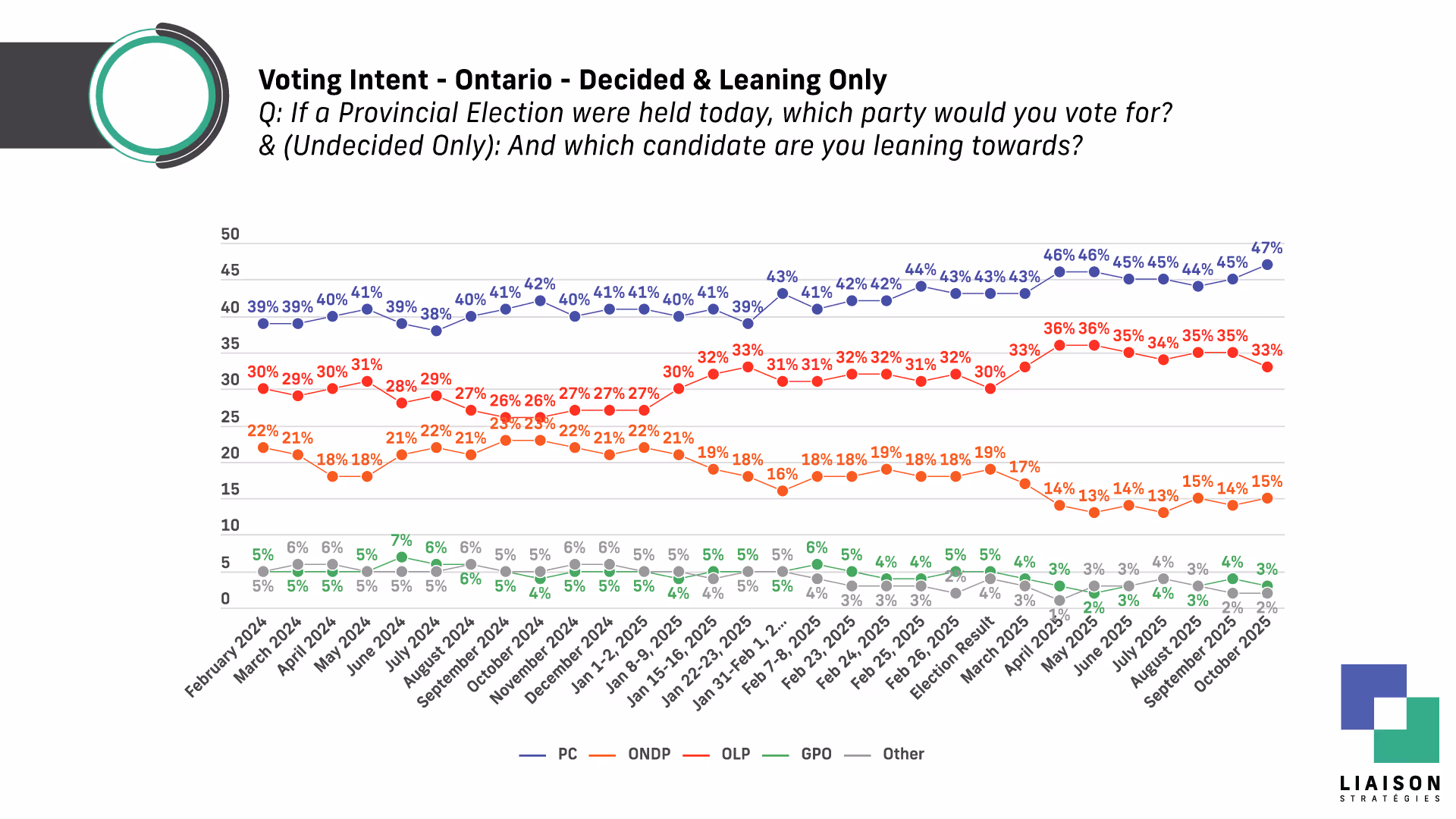 Liaison Strategies is one of the most accurate polling firms in Canada. It ranked #1 in accuracy in the 2025 Ontario election and #2 nationally in the 2025 federal election. Liaison is a member of the Canadian Research Insights Council (CRIC).